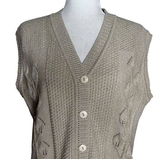 Vintage Tejidos America Knit Button Up Cardigan Vest Medium Beige Metallic