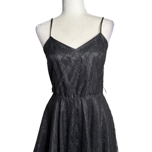 Vintage 90s Lace Handkerchief Hem Dress Size Medium Black Spaghetti Strap Goth
