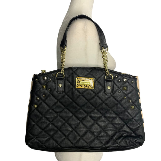 Betsey Johnson Peekaboo Leopard Shoulder Bag Black Quilted Snaps Gold Hardware