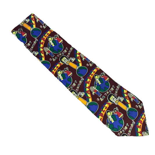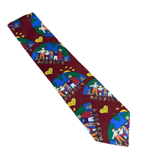 Vintage 90s Character Counts Fairness Silk Tie Maroon Red 3.75 Rainbow Necktie