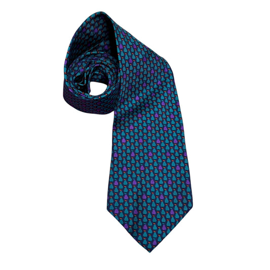 Christian Dior Monsieur Tie All Silk Teardrop Pattern Blue & Purple Made In USA Of Imported Fabric