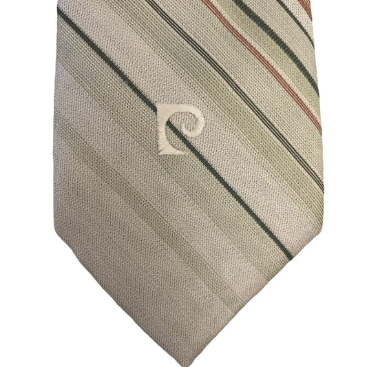 Vintage 70s Pierre Cardin Tie Tan Striped 3.5 in Necktie Imported Polyester
