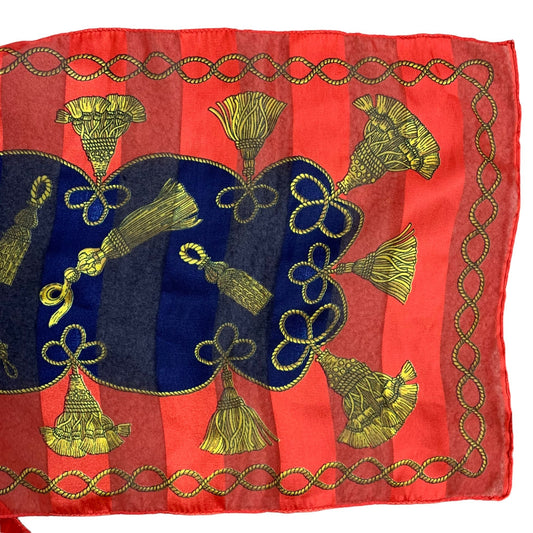 Vintage Long Rectangle Purse Hair Scarf 54 x 11 Red Striped Tassels Italy