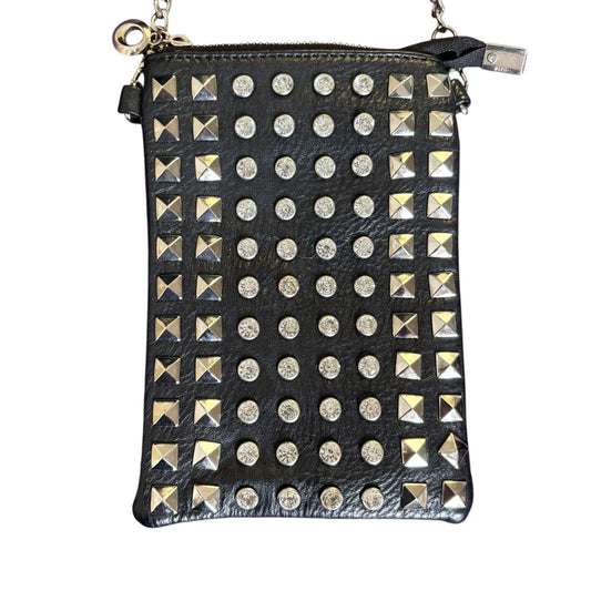 Black Faux Leather Studded Mini Wristlet Purse Chain Strap Zipper Closure
