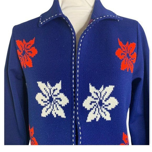 Vintage 70s Open Front Cardigan Sweater S Blue Stretch Knit Union Made