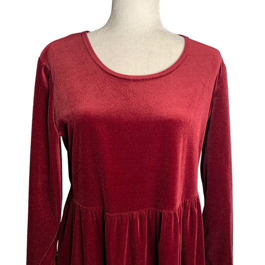 Vintage 90s Kathie Lee Velvet Dress 10 Maroon Red Long Sleeve Elastic Waist