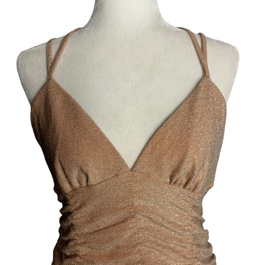 Wild Fable Silver Metallic Ruched Dress M Blush Pink Lined Adjustable Straps