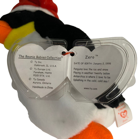 Zero the Penguin Christmas Retired TY Beanie Baby 1998 PE Pellets Excellent Cond