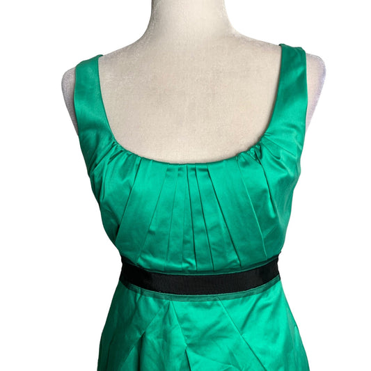Vintage Y2K BCBG Pleated Sheath Dress 2 Emerald Green Sleeveless Lined Zip
