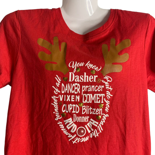 Holiday Reindeer Crewneck T Shirt M Red Knit Short Sleeve Rudolph Christmas NEW