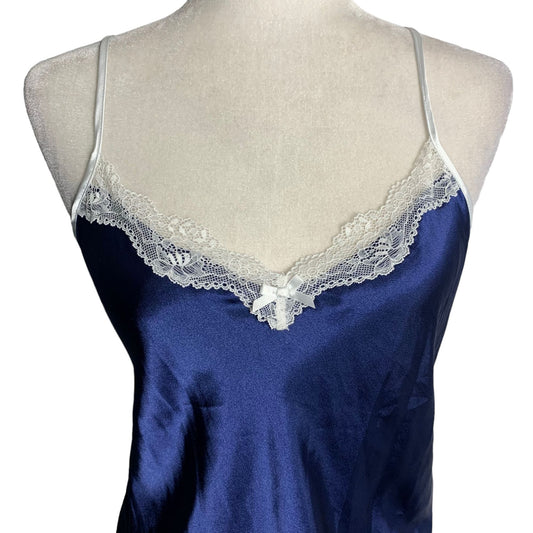 Linea Donatella Chemise Nightgown Lingerie S Blue Satin Adjustable Straps Lace