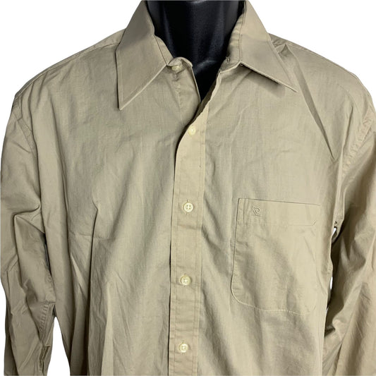 Pierre Cardin Button Down Shirt 16 34/35 Beige Tan Long Sleeve Chest Pocket