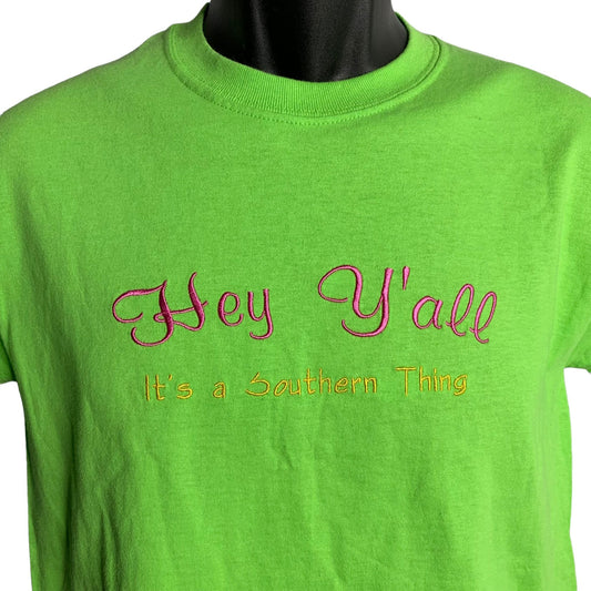 Hey Yall Embroidered Crewneck T Shirt S Lime Green Short Sleeves Southern Thing