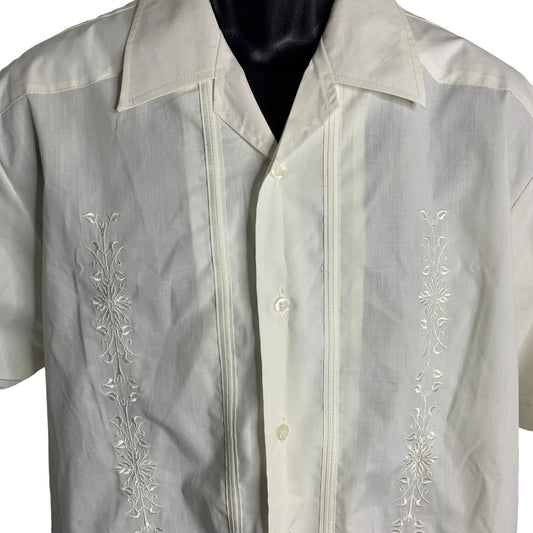 Monte Carlo Guayabera Shirt M Cream Button Up Embroidered Short Sleeves NEW
