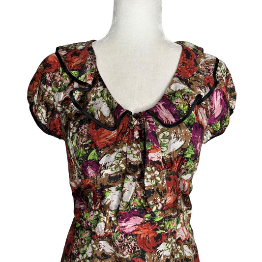 Twelve by Twelve Floral Silk Dress Ruffled Collar Small Multicolor Side Zipper