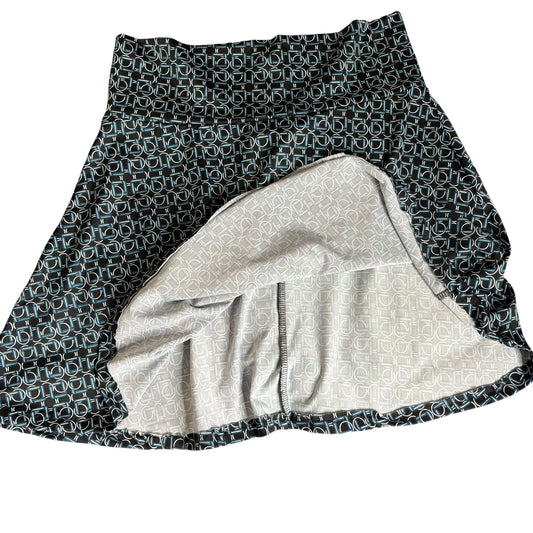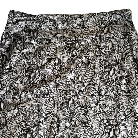 Dakini Leaf Patterned A Line Athletic Skirt Medium Black White Stretch Skater