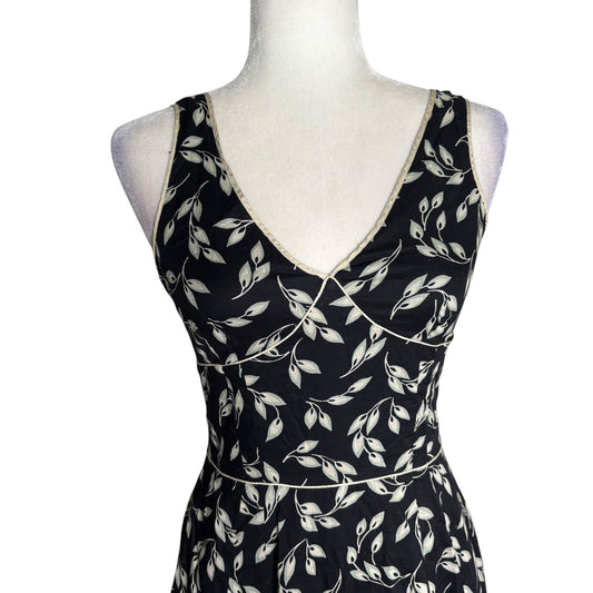 Gap Floral Sleeveless V Neck A Line Swing Dress Size 2 Black Side Zipper Lined