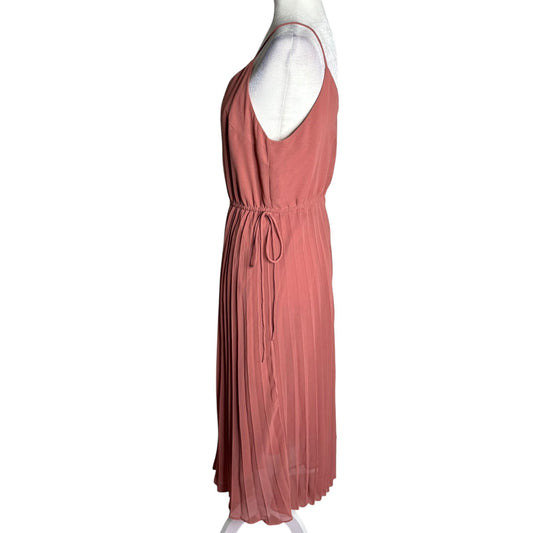 Asos Pleated Midi Dress Size 10 Rose Pink Spaghetti Straps V Neck Lined Elastic