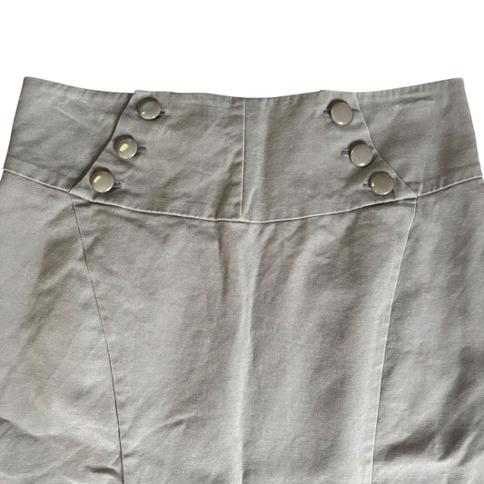 Worthington Gray Button Front High Waisted Pencil Skirt 12P Cotton Blend Petite