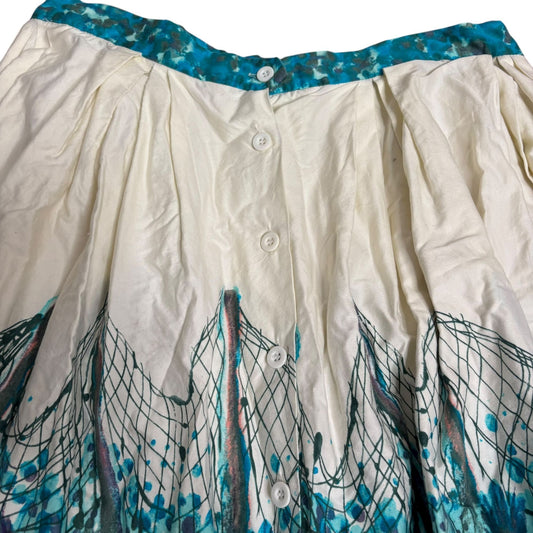 Retro Retrospecd Ocean Print Skirt Size 14 Full Button Front Full Circle Pinup