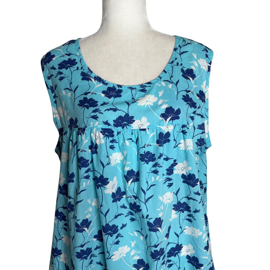 Anthony Richards Sleeveless Floral MuuMuu 2X Blue Cotton House Dress Pockets