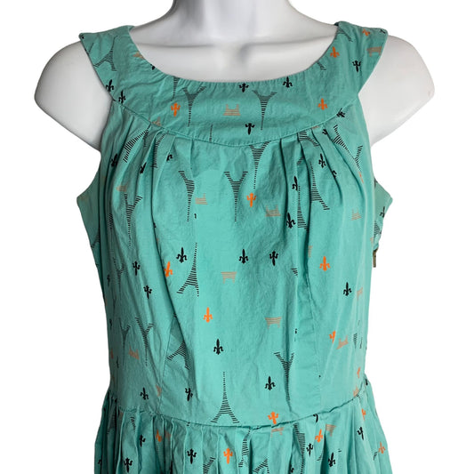 Bettie Page Retro Eiffel Tower Pinup Dress XS Blue Paris Sleeveless Rockabilly