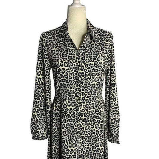 Spirit of Grace Cheetah Print Shirt Dress M White Black Buttons Long Sleeve NEW