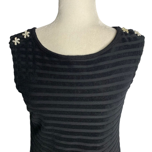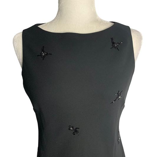 Vintage Evan Picone Beaded Sheath Dress 6 Black Lined Sleeveless Midi Pullover