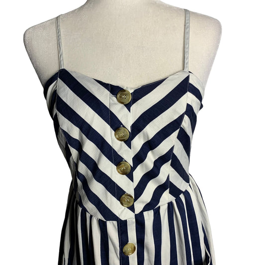 Style House Button Up Midi Dress M Blue White Striped Pockets Adjustable Straps
