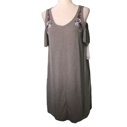 Sonoma Cold Shoulder Embroidered Dress S Grey V Neck Knee Length Stretch NEW