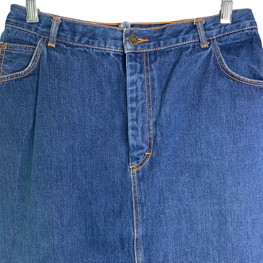 Vintage 80s Gitano Denim Skirt M Dark Wash Jean Pockets Button Zip
