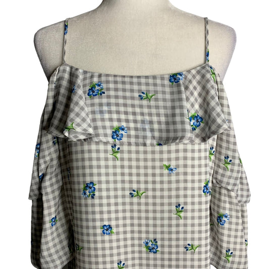 Skies are Blue Off the Shoulder Dress S White Check Floral Adjustable Straps