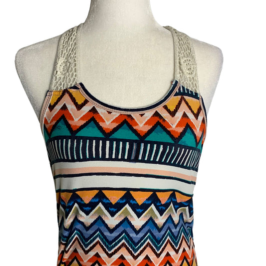 Love Crochet Knit Racer Back Maxi Dress M Multicolored Geometric Stretch Summer