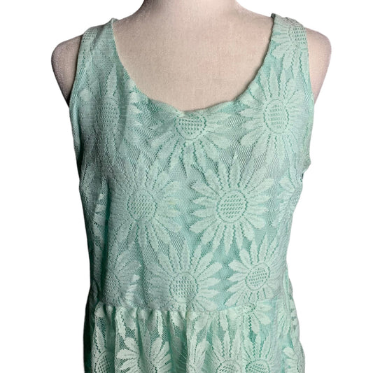 Lace Daisy Sleeveless Mini Dress XL Blue Floral Elastic Waist Lined Keyhole Zip