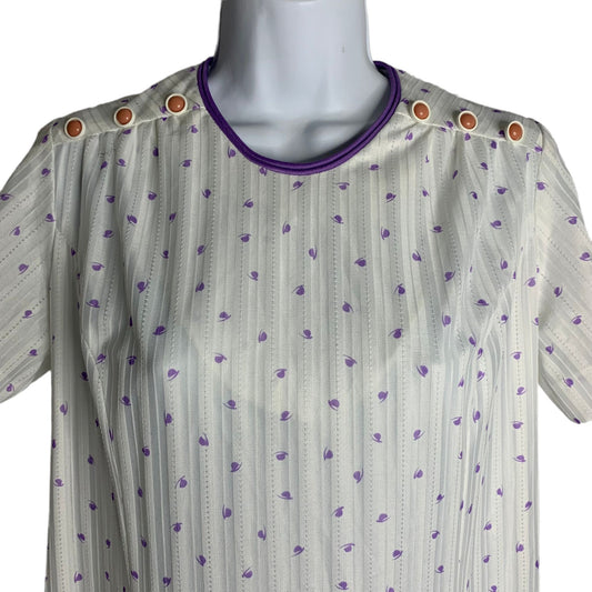 Vintage 70s British Lady Shift Dress S White Short Sleeve Button Zip Union Label