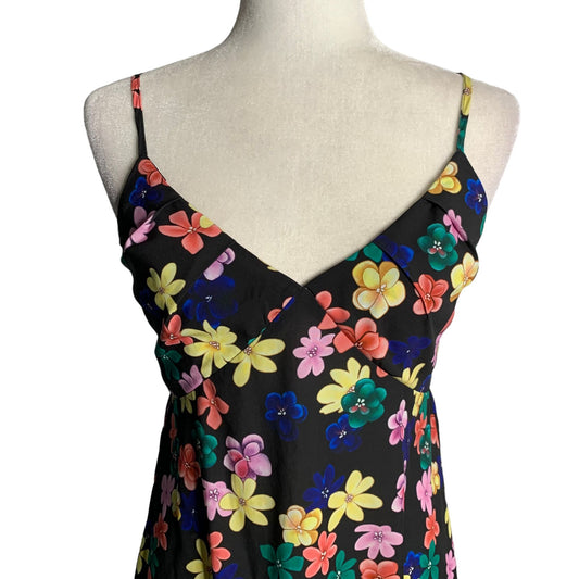 Sleeveless Sweetheart Maxi Sun Dress M Black Floral Adjustable Straps Shirring