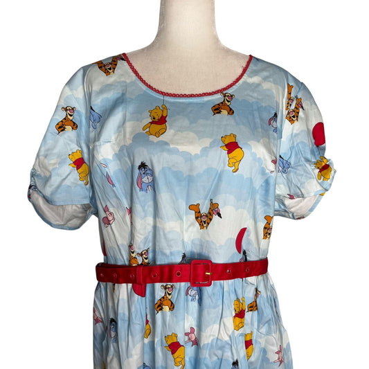 Disney Winnie The Pooh Loungefly Stitch Shoppe Dress Size 3XL Blue Belted Zipper