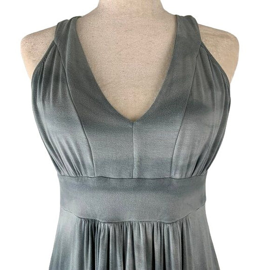 Athleta Sleeveless Maxi Dress S Grey White Striped Ruched Sides Lined Stretch