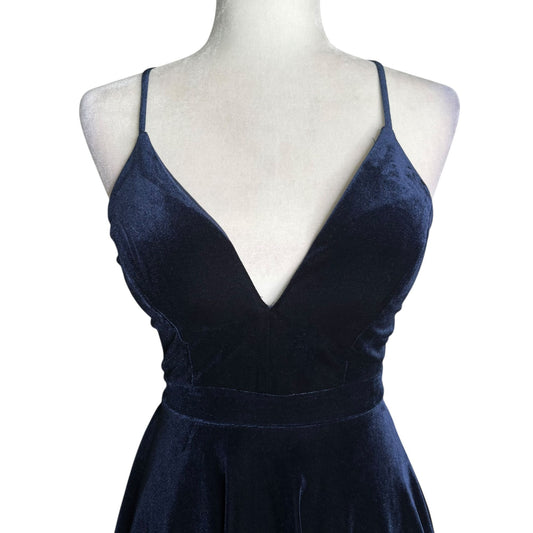 Lace Back Velvet Fit Flare Mini Dress XS Navy Blue Adjustable Straps Back Zip