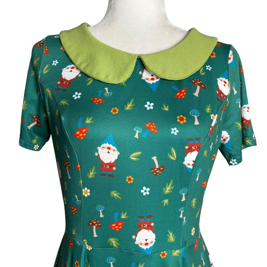 Unique Vintage Skater Dress Medium 6-8 Green Peter Pan Collar Gnome Mushroom