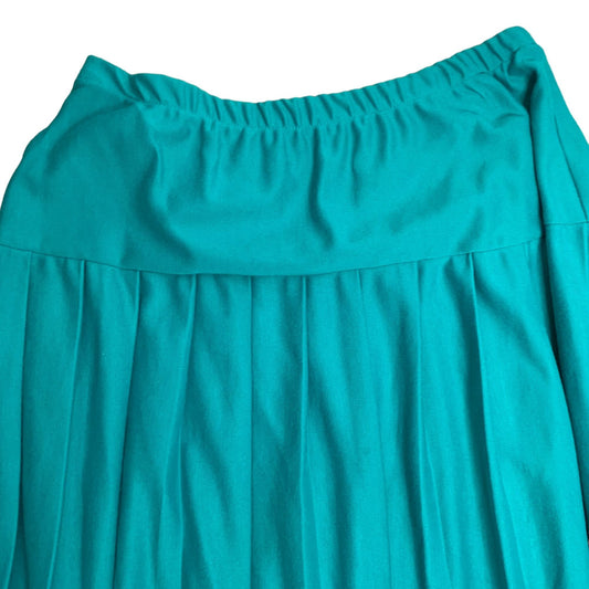 Vintage 80s Pull On Midi Skirt XL Turquoise Blue Pleated Elastic Waist USA