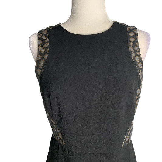 Ann Taylor Sleeveless Sheath Dress 4 Black Metallic Animal Print Zipper Lined