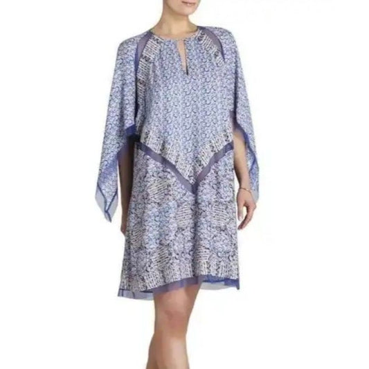 Calypso St Barth Ikat Silk Mini Dress XS Blue Elephants Scoop Neck Sleeveless