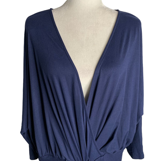 Unique Vintage Retro Dolman Maxi Dress 3X Blue Elastic Waist Wrap Low V Neck