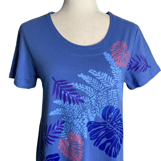 Vintage 90s Hand Painted Maxi Dress S Blue Hawaiian Floral Short Sleeve Cotton
