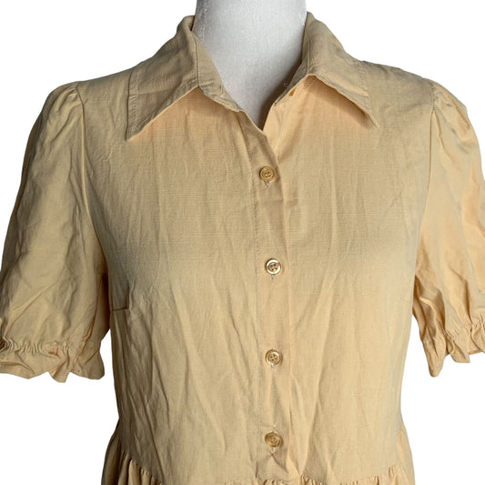 Roylamp Short Sleeve Ruffle Shirt Dress S Yellow Buttons Pockets Side Zipper NEW