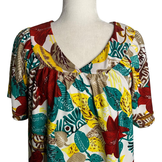 Loralette Short Sleeve High Low Dress 14/16 Black Palm Floral Buttons Pockets