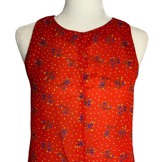 Vintage Handmade Fit N Flare Dress M Red Floral Sleeveless Button Knee Length