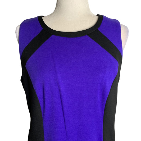 Ellen Tracy Colorblock Sheath Dress 8 Blue Black Lined Sleeveless Zip Round Neck