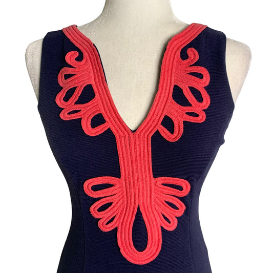 Lilly Pulitzer Janice Shift Dress XS Navy Blue Coral Sleeveless Lined Zipper